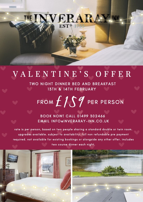 Escape to the romantic shores of Loch Fyne this Valentine’s Day for a memorable two-night break at The Inveraray Inn, where historic charm and stunning scenery set the stage for a perfect getaway.